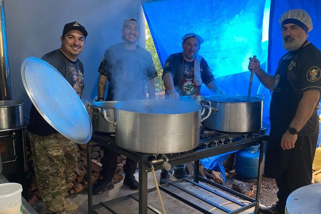RECONSTRUÇÃOSolidariedade: “Homens de Fé” servem marmitas aos voluntários da reconstrução em Rio Bonito do Iguaçu