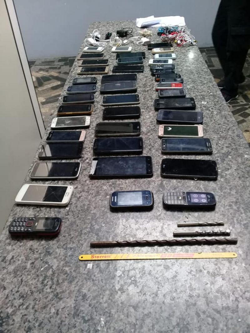 Os agentes desconfiaram e realizaram a verificação do eletrodoméstico. Foram encontrados em seu interior 42 celulares, além de brocas e serras.