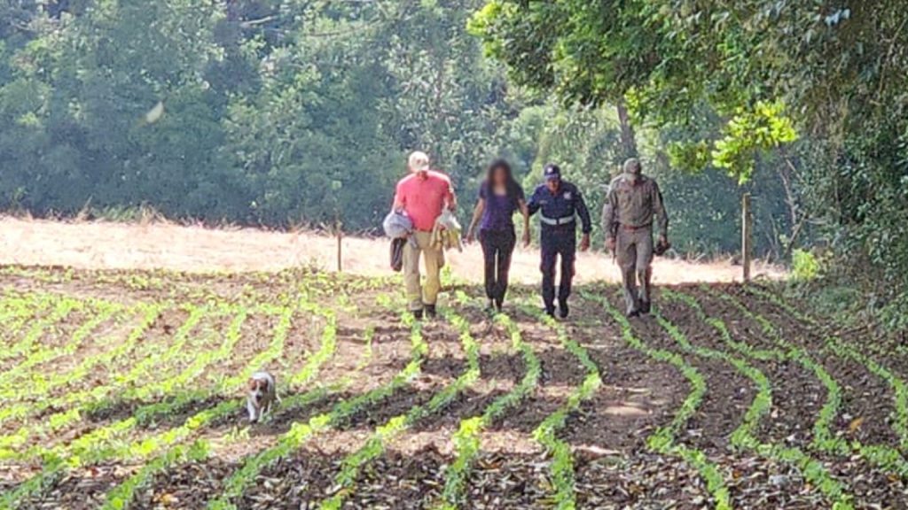 As buscas desta quinta-feira contaram com dez bombeiros militares, divididos em três equipes, além do apoio de um drone com câmera termal do 2º Grupamento de Bombeiros. Após cerca de uma hora e meia de varredura por mata fechada e áreas de plantação, a mulher foi encontrada.