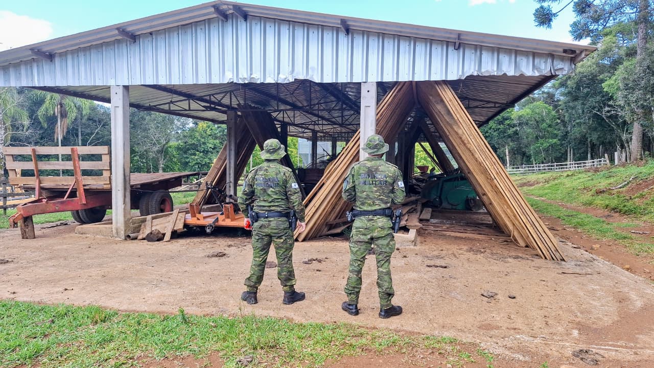 No local, a equipe ambiental encontrou madeiras já serradas, provenientes diretamente da área desmatada, totalizando:
