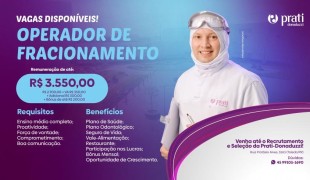 OPORTUNIDADES Prati-Donaduzzi abre vagas para Operador de Fracionamento; salários chegam a R$ 3,5 mil