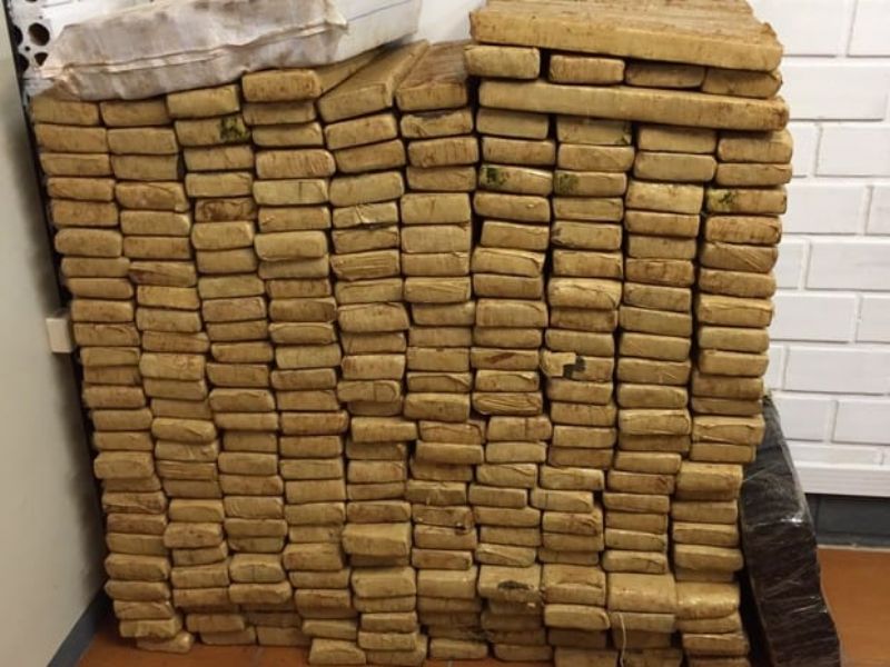 A droga estaca armazenada no compartimento de cargas do caminhão, escondida dentro de móveis, e pesou 426 quilos.