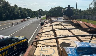 FLAGRANTEPRF apreende 380 mil maços de cigarros contrabandeados nesta segunda (2) na BR-277, em Guarapuava