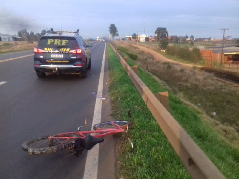 A Polícia Rodoviária Federal (PRF) foi acionada por volta das 06h45, para averiguar um acidente envolvendo ciclista. No local, a equipe policial constatou tratar-se de acidente do tipo queda de bicicleta, tendo com vítima um jovem de 23 anos, com ferimentos considerados graves.