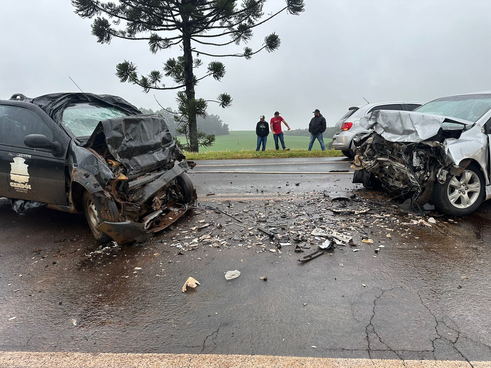 Duas pessoas morreram no local e uma ficou ferida, sendo encaminhada para o hospital em Candói.