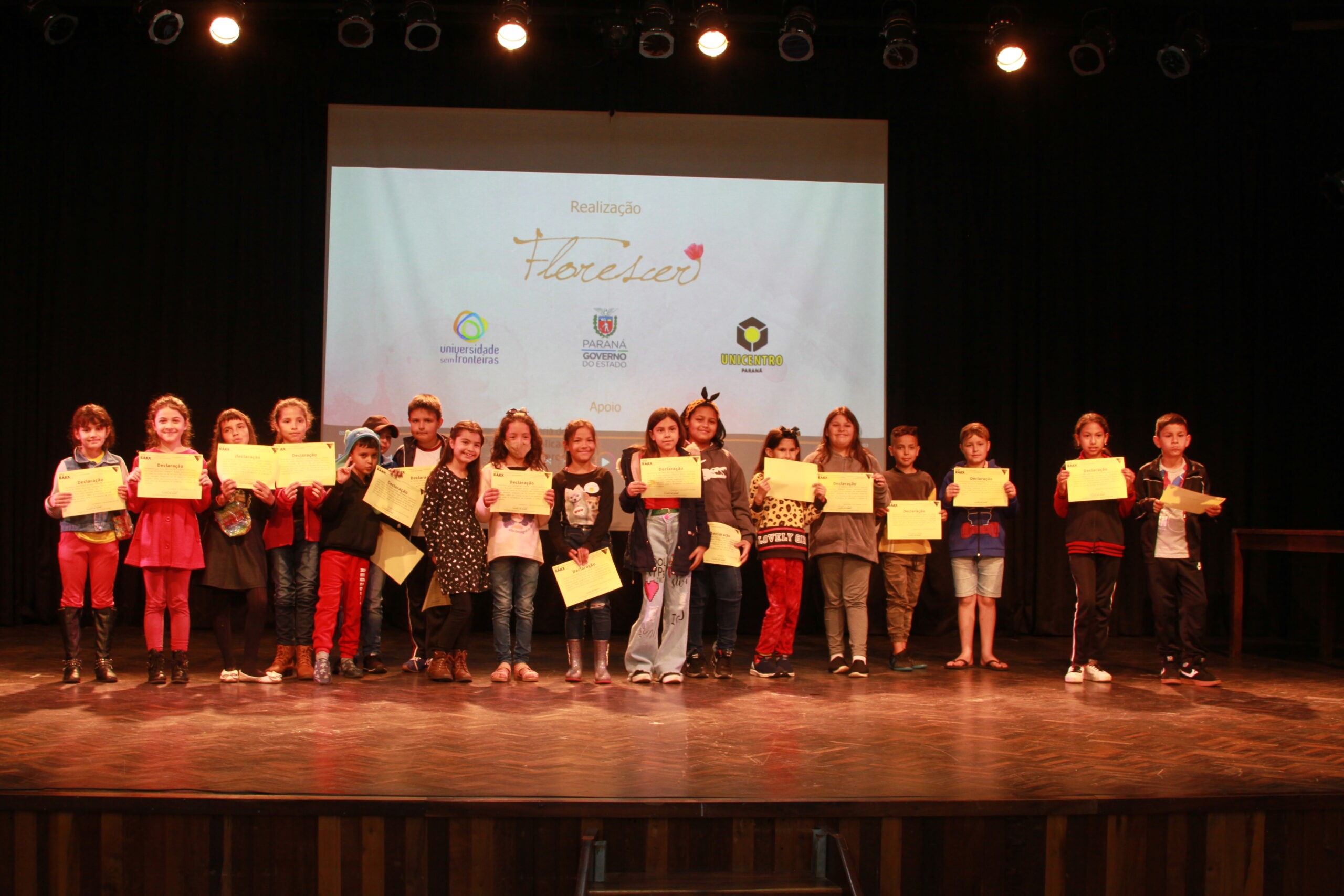 Alunos das escolas municipais Maria de Jesus Taques e Hildegard Burjan, foram até à Universidade Estadual do Centro Oeste (Unicentro) para assistir às produções e à apresentação do projeto Florescer, no XV Encontro Anual de Extensão da Unicentro, Eaex 2022.