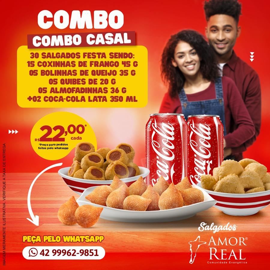 O final de semana chegou e nada melhor que curtir o sábado e domingo a dois. Para combinar ainda mais com esse momento, a Salgados Amor Real preparou uma promoção especial: o Combo Casal.