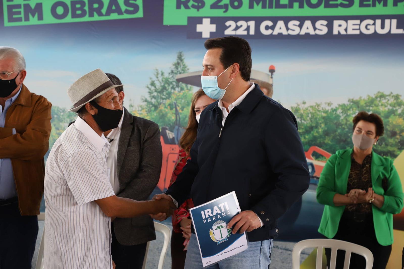 Os moradores do bairro Alto da Lagoa, em Irati, agora têm os títulos definitivos de suas propriedades. O governador Carlos Massa Ratinho Junior esteve nessa sexta feira (24 de setembro) na cidade do Centro-Sul do Estado e entregou a documentação que reconhece o direito de propriedade a 221 famílias. O governador também confirmou R$ 2,6 milhões para a pavimentação do Condomínio Industrial da Vila São João.