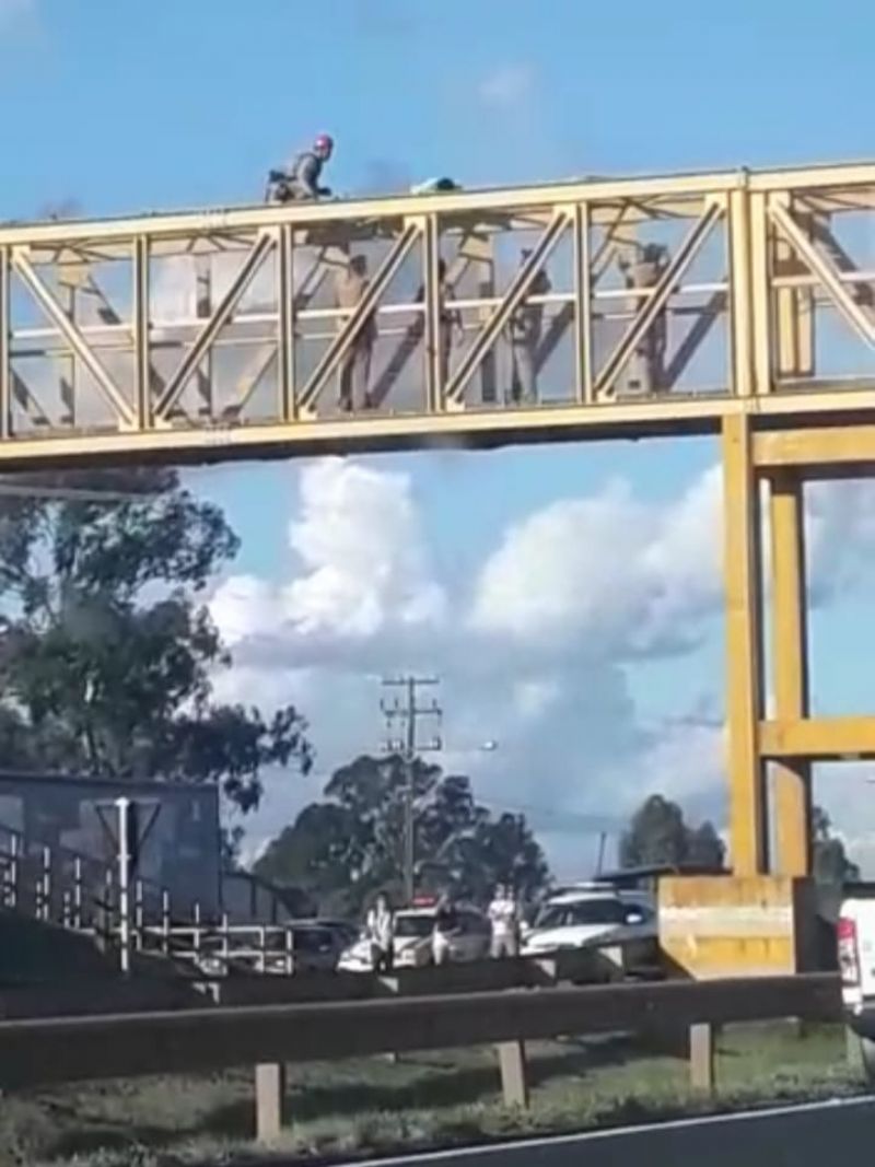 Mais um homem é resgatado pelo Corpo de Bombeiros sobre a passarela na BR 277, em Guarapuava