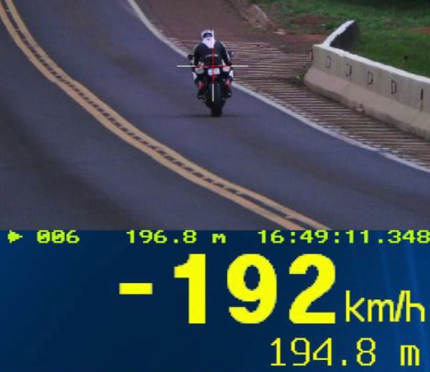 A Polícia Rodoviária Federal (PRF) flagrou um motociclista trafegando a 192 km/h durante ação de fiscalização de velocidade realizada na BR-277, em Guarapuava.