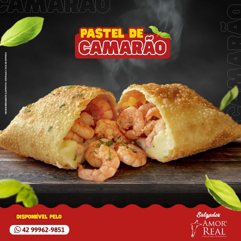 Esse é sem dúvida é um dos melhores pasteis, da linha gourmet. Bem recheado camarão, queijo e mais alguns ingredientes que dá aquele sabor único, é uma verdadeira moqueca de camarão.