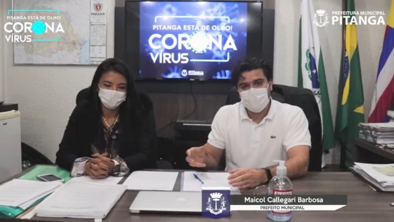 Pitanga tem primeiro caso confirmado de Covid-19. A informação foi divulgada na tarde desta quarta feira (20 de maio), durante pronunciamento do Prefeito da cidade Maicol Callegari Barbosa e da secretária de Saúde, Emily Sakurai, nas redes sociais.