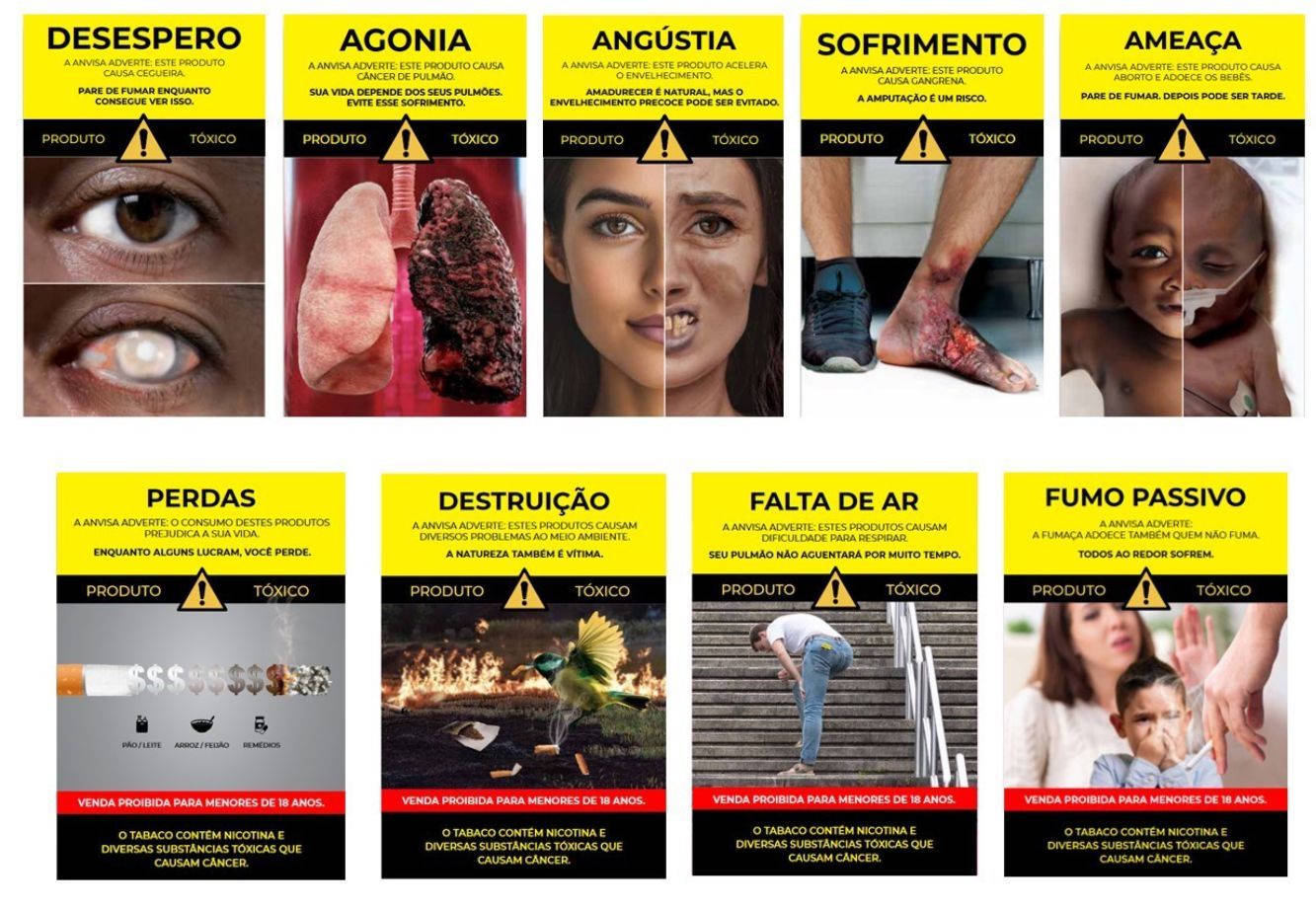As novas advertências abrangem um conjunto de sete imagens e textos que abordam diversos problemas de saúde. Todo o conteúdo está disponível nesta página.