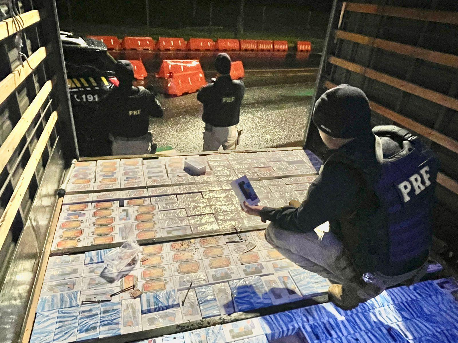 Policiais rodoviários federais apreenderam na noite dessa segunda feira (12 de setembro), mais de setecentos aparelhos celulares contrabandeados, na BR 277, em Candói.