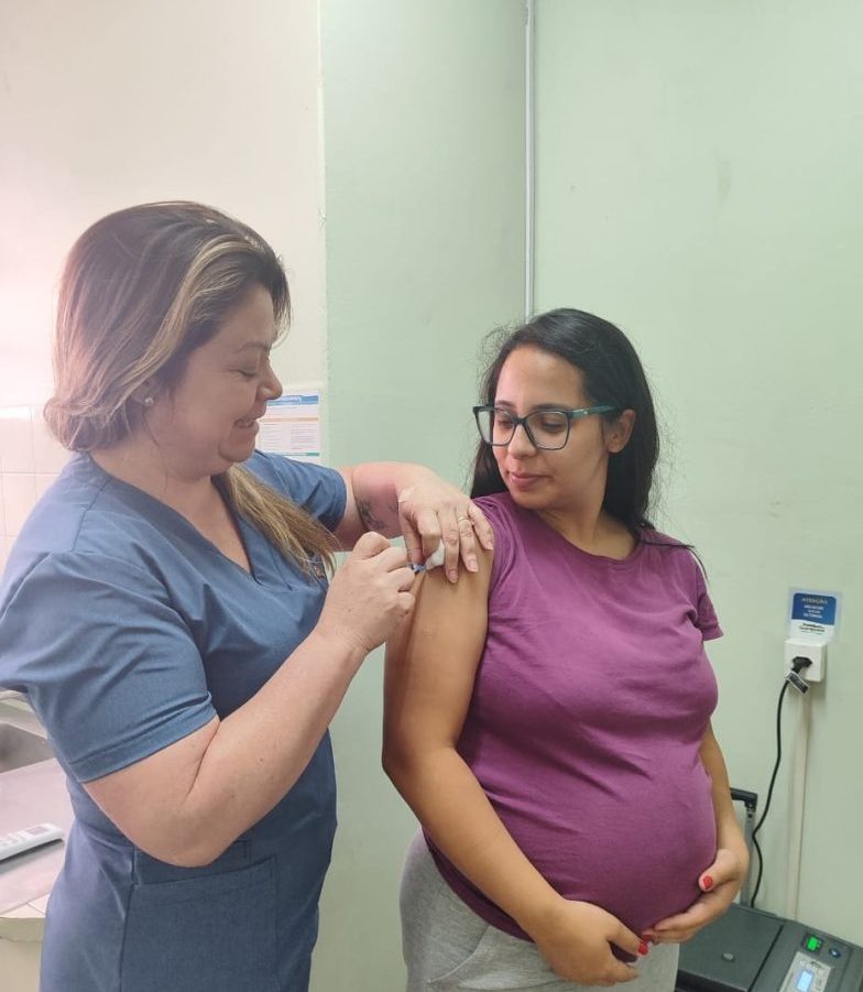 A vacina está disponível para todas as gestantes a partir de 28 semanas, seja o pré-natal pelo SUS ou pela rede privada.