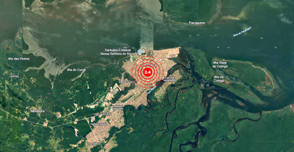 Um tremor de terra de magnitude 2.4 foi registrado próximo ao município de Paranaguá, no Paraná, na madrugada de domingo (12 de abril de 2026), à 00h28 (Horário de Brasília). O tremor foi sentido pela população local.