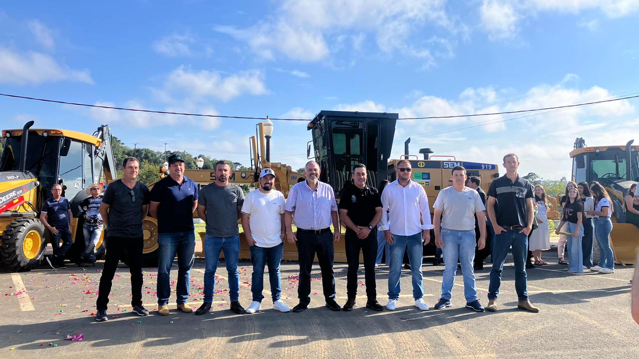 Além da entrega, também foram destacados os investimentos conquistados para o município, que somam mais de R$ 22,6 milhões, incluindo os maquinários. Estiveram presentes os vereadores Jackson Luiz Pereira e Afonso Pontarolo, além de integrantes da administração municipal.