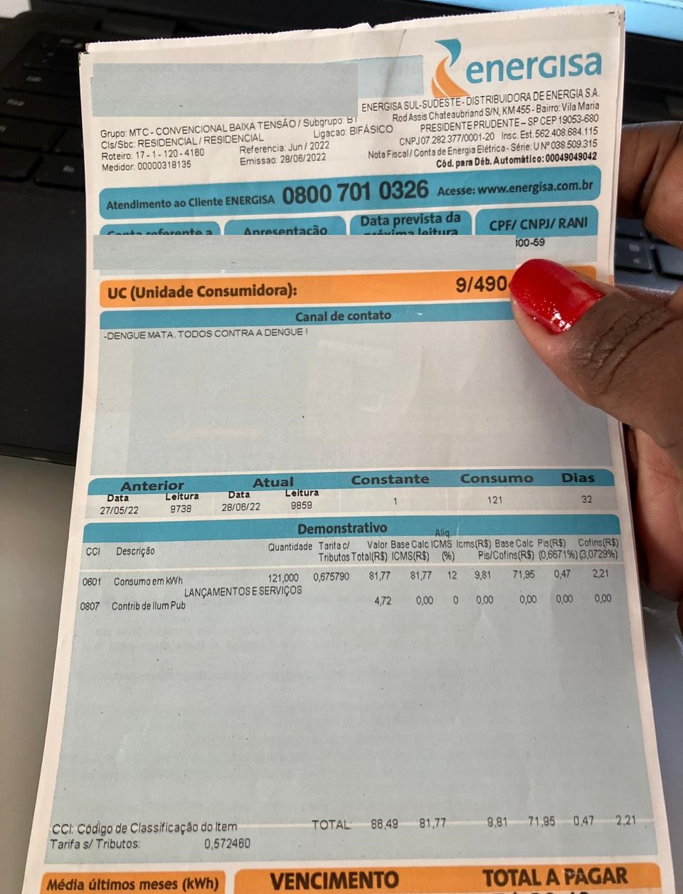 Número da unidade consumidora na conta de luz será atualizado em janeiro