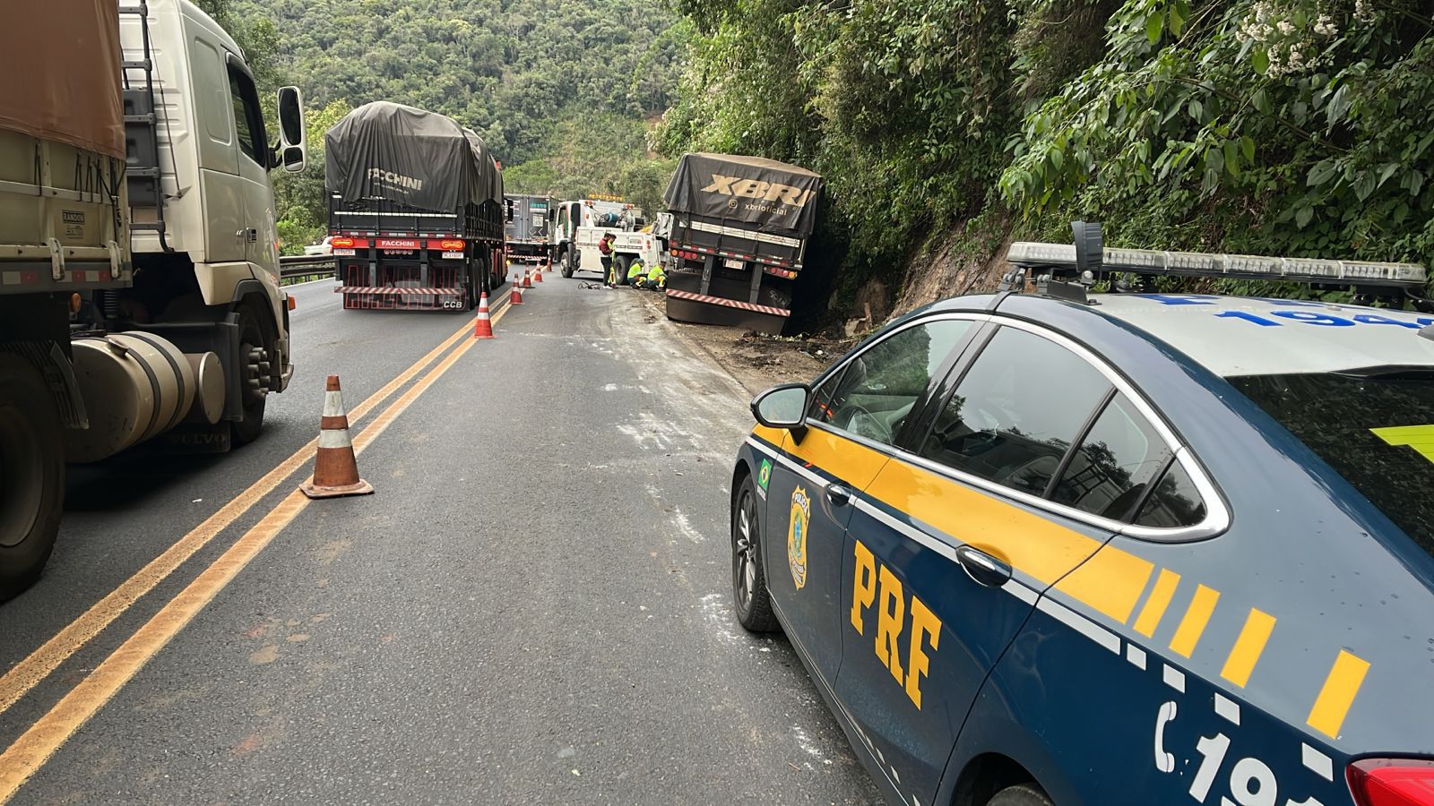 Uma equipe da Polícia Rodoviária Federal (PRF) está orientando o trânsito no local, que segue sem interdição, mas com lentidão no fluxo.